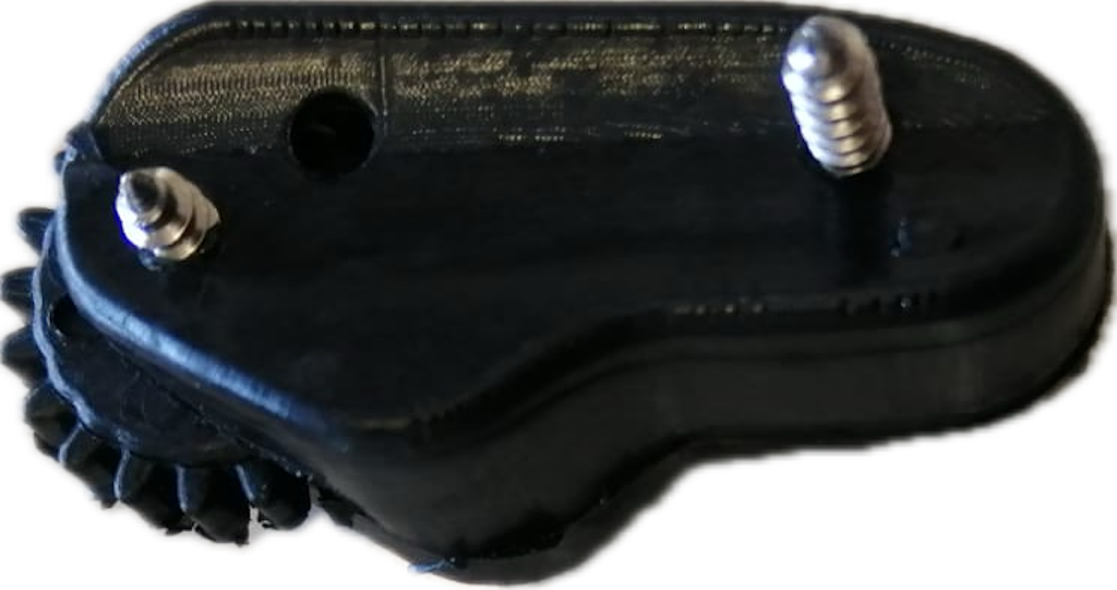 É operado pelo polegar girando a roda dentada quando submerso para fazer um ruído especial que atrai os peixes